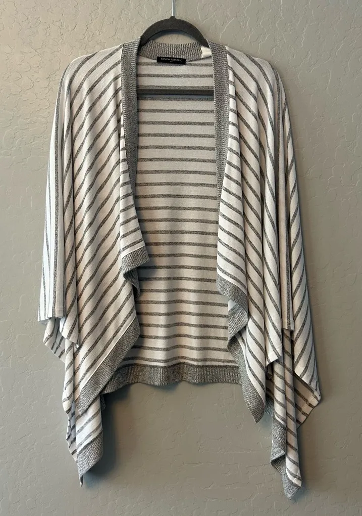 Banana republic factory outlet gray and white striped open shawl sweater One size No issues. Has... Show more
