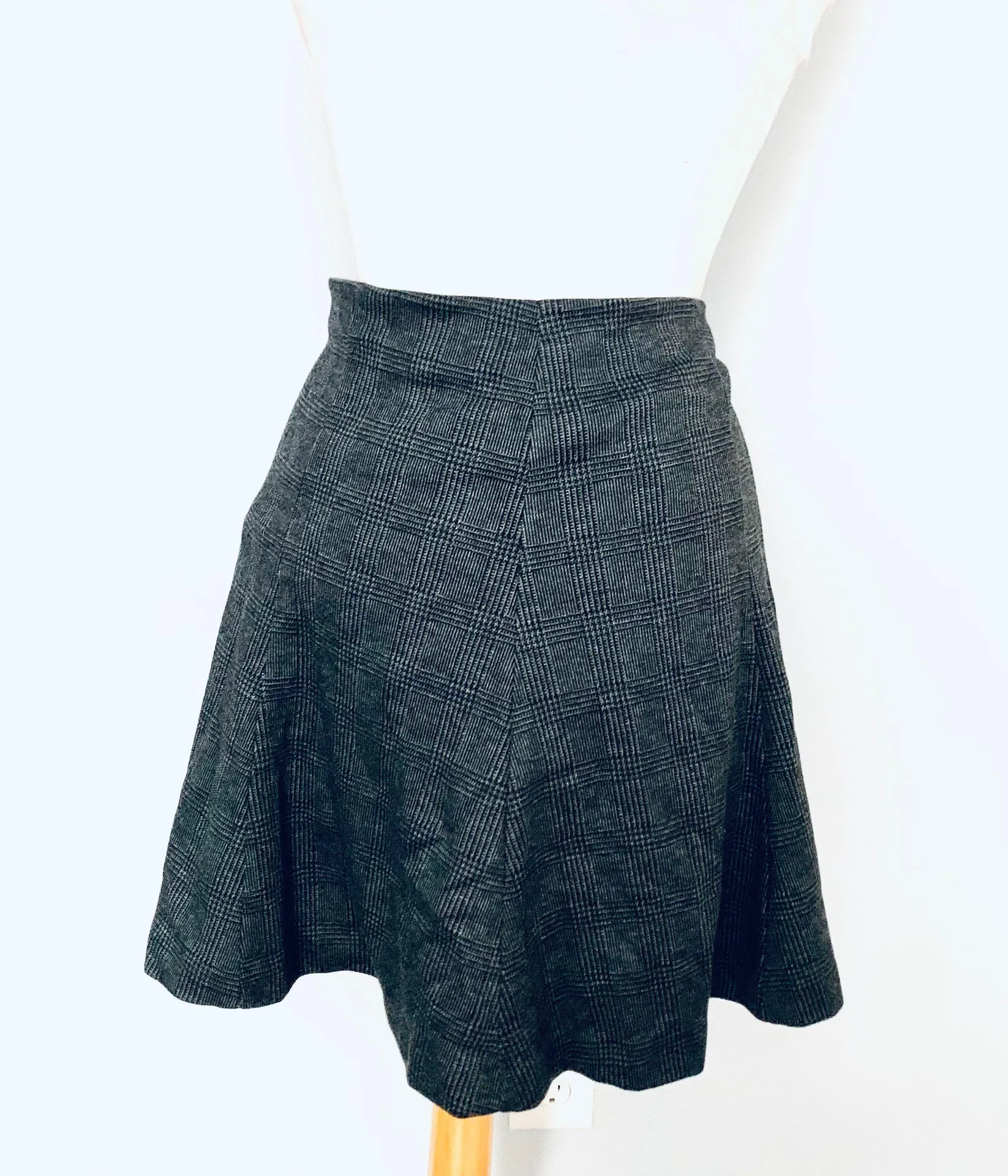 Banana Republic Factory gray black plaid skater mini skirt Thick, stretchy fabric Fitted with flared... Show more