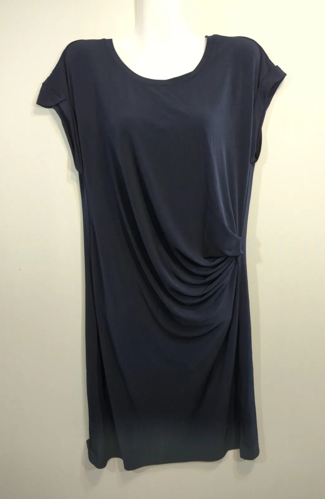 Banana Republic Navy Ruched Tee Shirt Dress Womens Size Large Cap Sleeve Casual