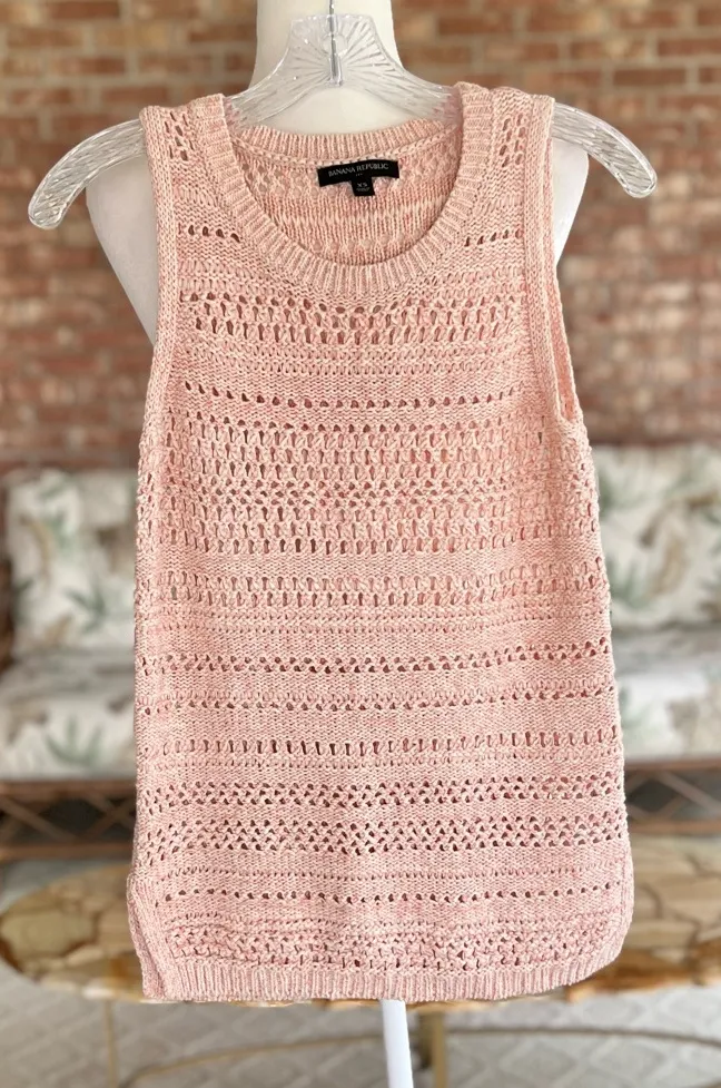 Banana Republic Factory Peach Knit Tank Top ~ peach and ivory knit sweater tank top ~ lightweight c... Show more