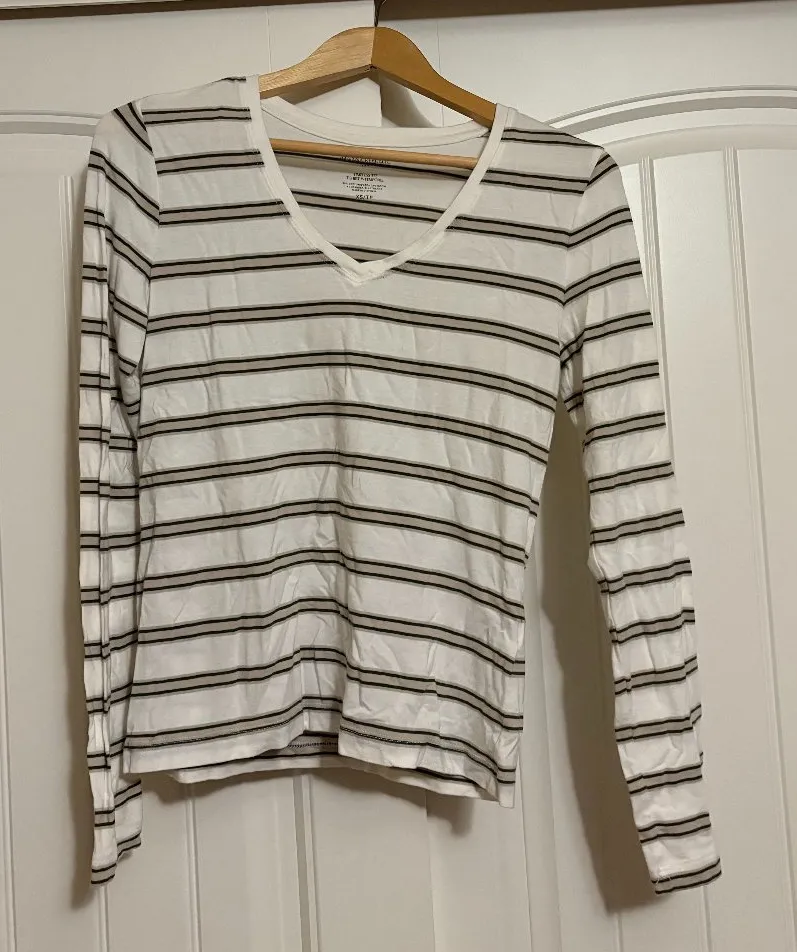 Timeless Tee from Banana Republic Factory White with Light Purple Stripes Size XS Long Sleeve V... Show more
