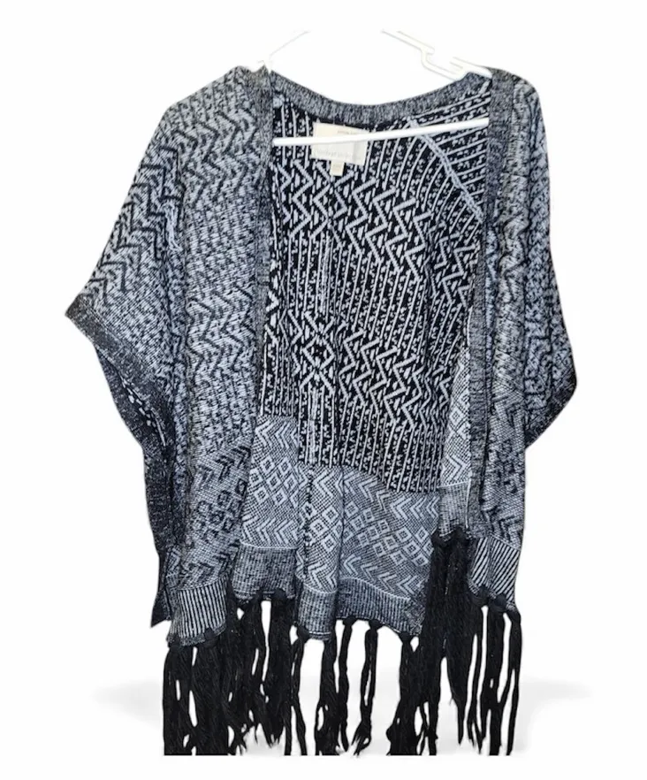 Black/Gray Fringe Cape Sweater. Chunky knit. Perfect for those cold days. Very cozy and Comfortable.... Show more