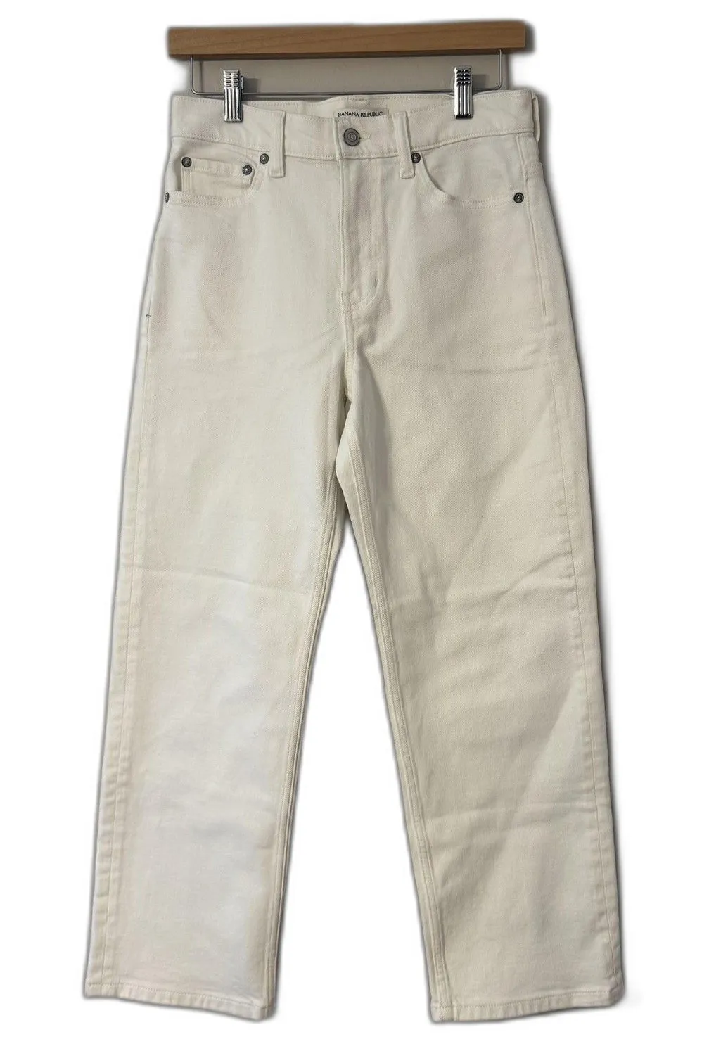 Brand: Banana Republic Style: Womens petite straight-fit jeans in white light-wash denim with a cro... Show more