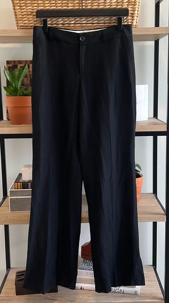 58% Rayon, 42% Linen drape mid-weight woven fabric. 2 front & 2 back functional pockets. Zip fly w/... Show more