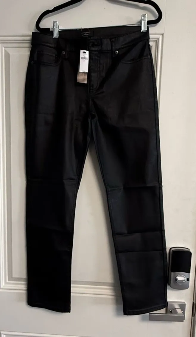 Brand: Banana Republic • Style: Mid-Rise Slim Fit • Color: Black with a sleek coated/waxed finish (l... Show more