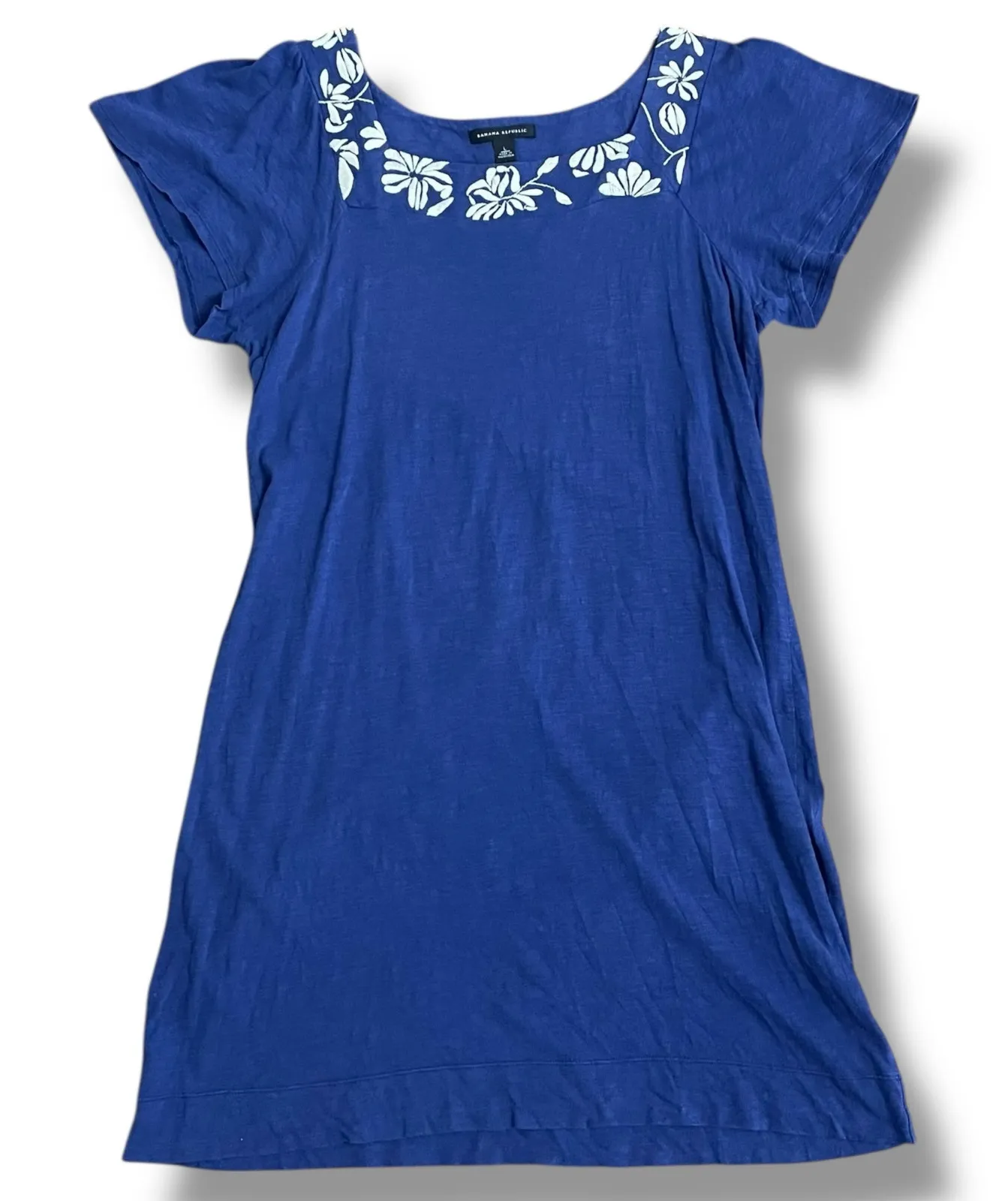 Classic Banana Republic navy blue cotton dress featuring a relaxed shift silhouette and white embroi... Show more