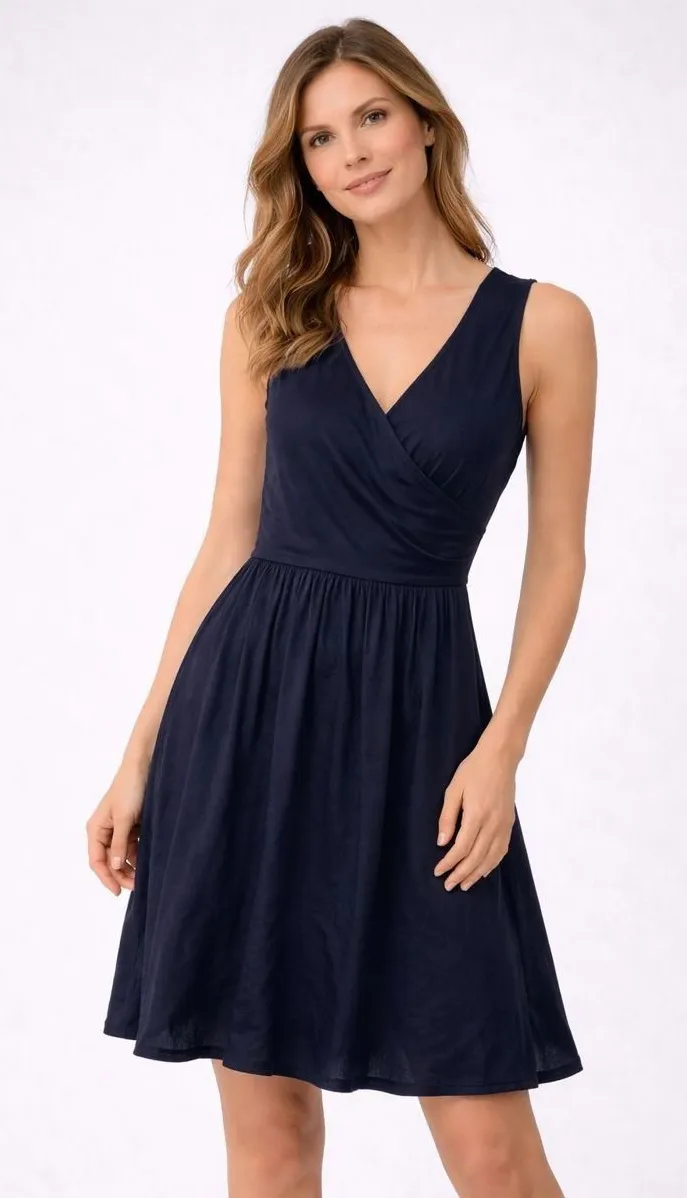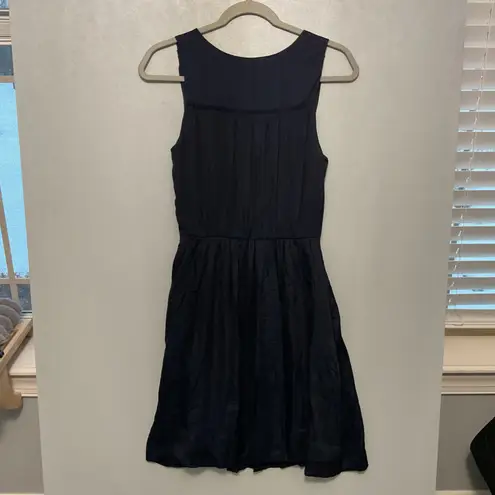 A navy blue sleeveless fit and flare dress from Banana Republic. This dress features a flattering ci... Show more