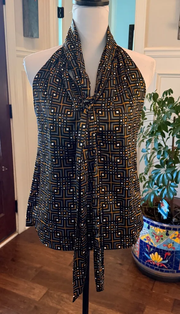 Banana Republic NWOT Geometric Black and Gold Halter Tie Top Size XS - $25 - From Megan