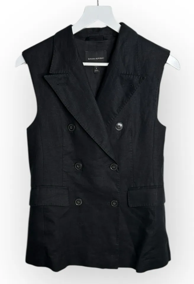 Banana Republic Palma Linen Long Vest Black V Neck Double Breasted Front pockets Very good conditi... Show more