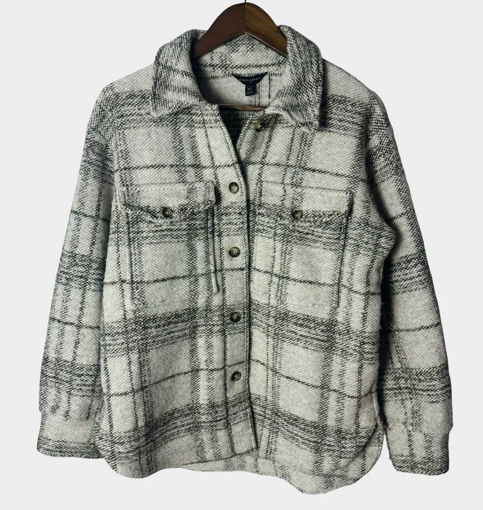 New with tags Brand: Banana Republic Size: XS Petite Color: Oatmeal / gray plaid Style: Shacket jac... Show more