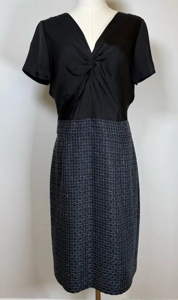 Banana Republic sheath dress women’s size 10, short sleeve, black v-neck top, navy plaid boucle skir... Show more