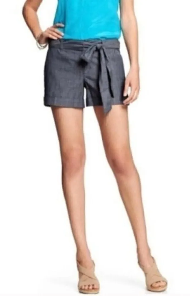 Chambray Martin fit tie shorts by Banana Republic. Size 2. * Zip fly. * Sash belt. * Belt loops *... Show more