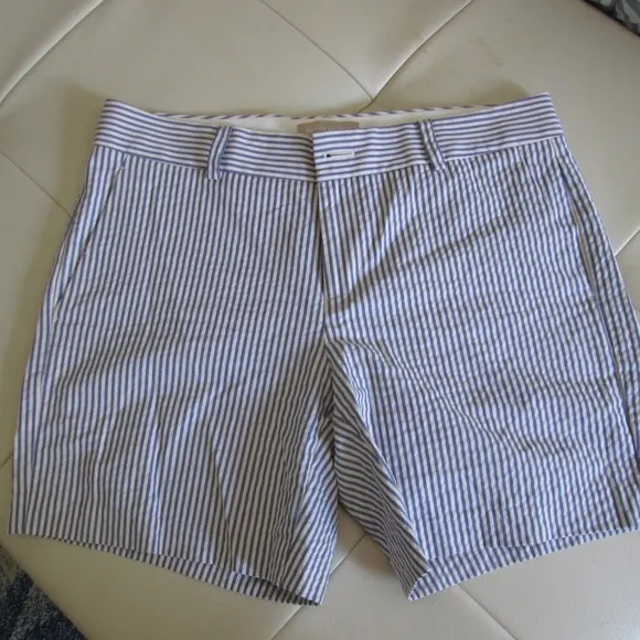 Like new; blue/white striped shorts. Only worn once. Size 10. 6" inseam. Side pockets and flat ba... Show more