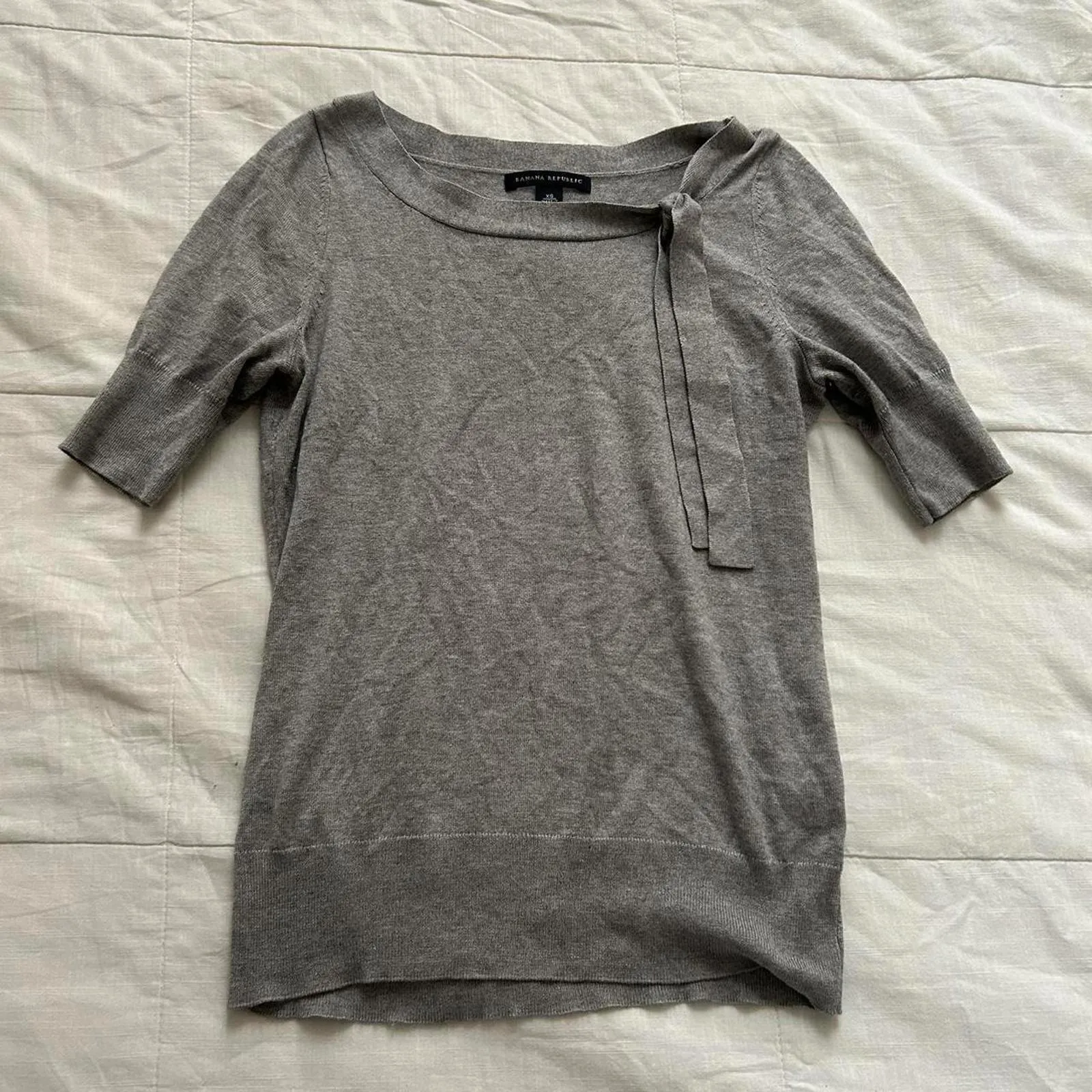 Banana Republic silk blend knit Grey short sleeve blouse with bow detail. Perfect for coquette femme... Show more
