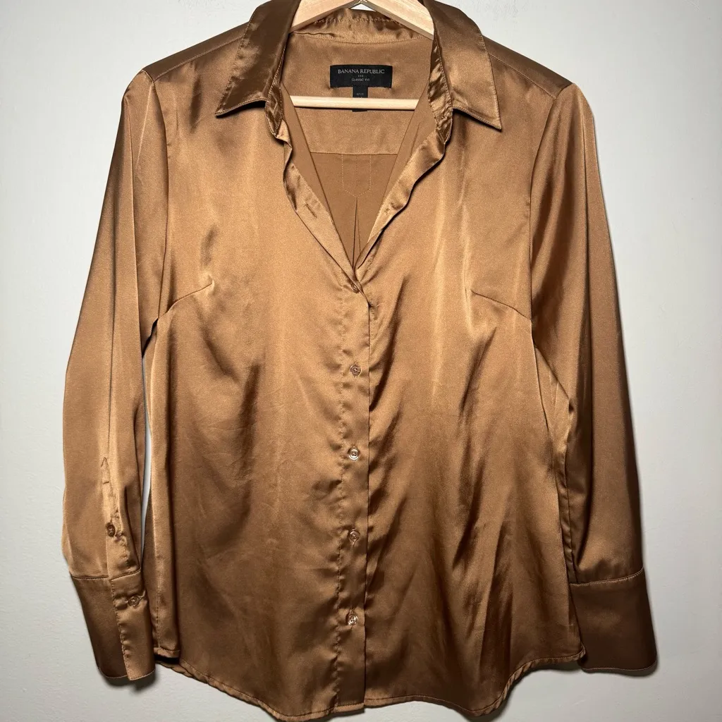 Banana Republic Silk Satin Button Down Womens Dress Shirt Size Petite Medium Brown - $35 - From Jen