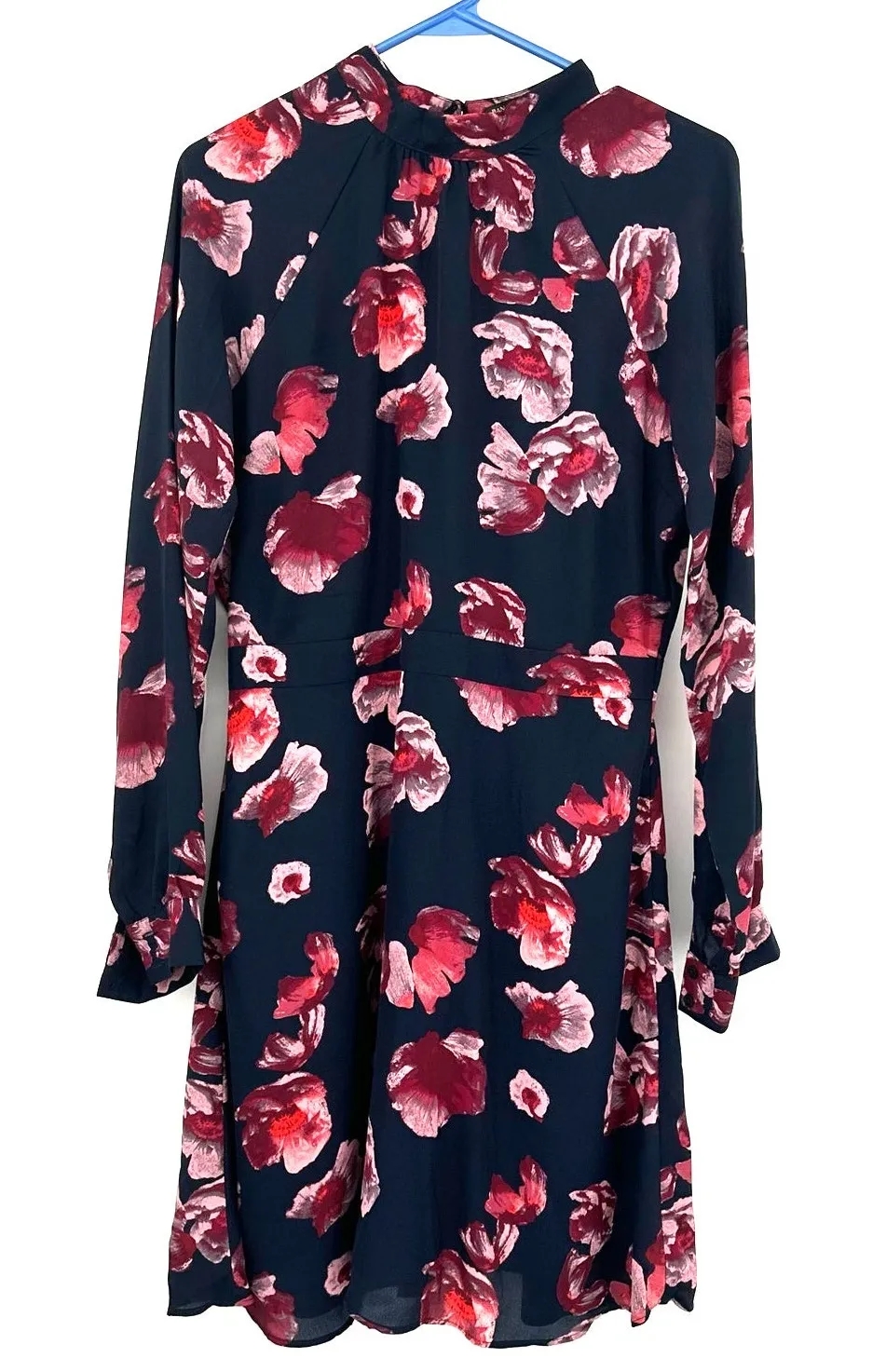Banana Republic‎ Size 6 Dress Blue Red Floral High Neck Long Sleeve Fit & Flare Black - $28 - From Taylor