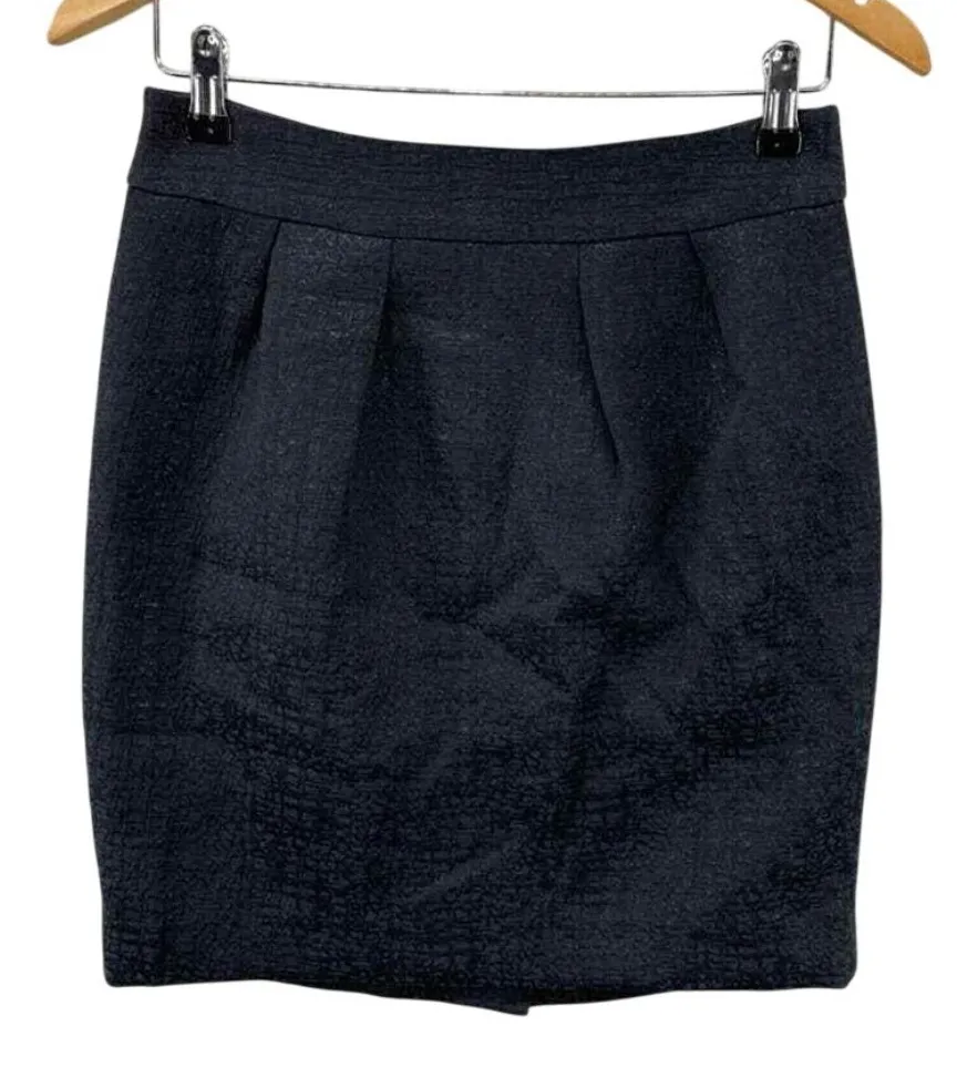 Banana Republic Skirt Womens 4 Petite Black Sparkle Pleated Front Zip Back Approximate Measure... Show more