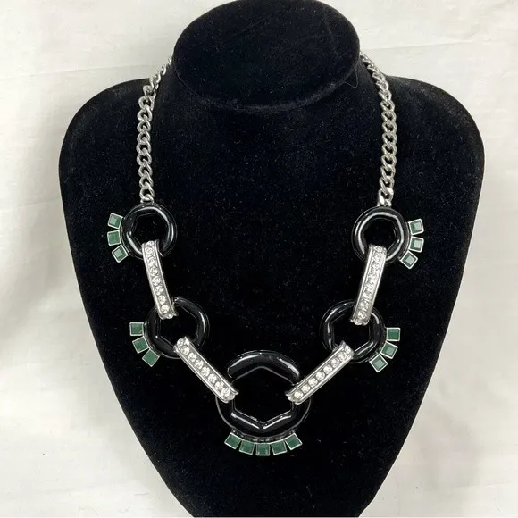 Banana Republic Statement Necklace with Enamel Black Rings, Green Stones & Rhinestones Enamel black... Show more
