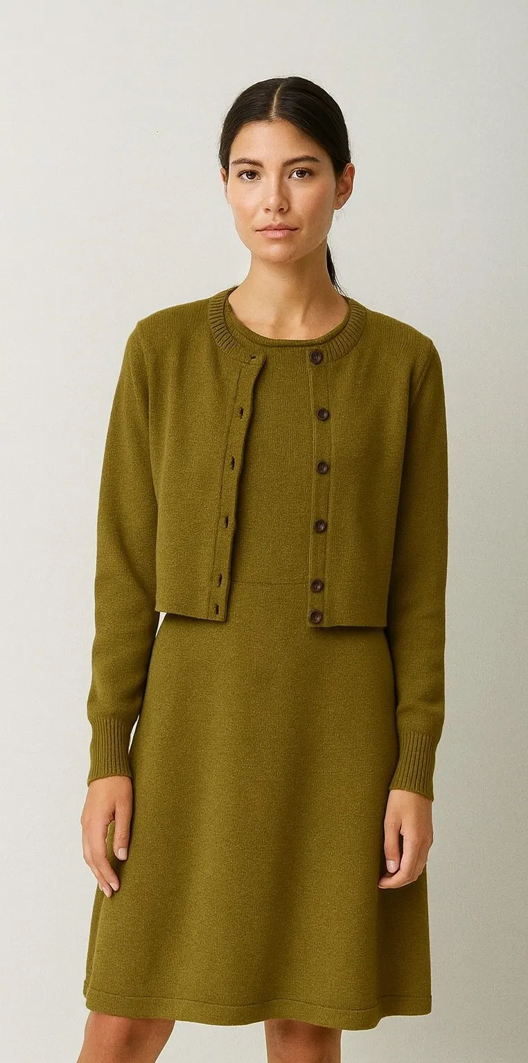 This vintage Banana Republic 2-piece sweater set includes a sleeveless knit shift dress and a coordi... Show more