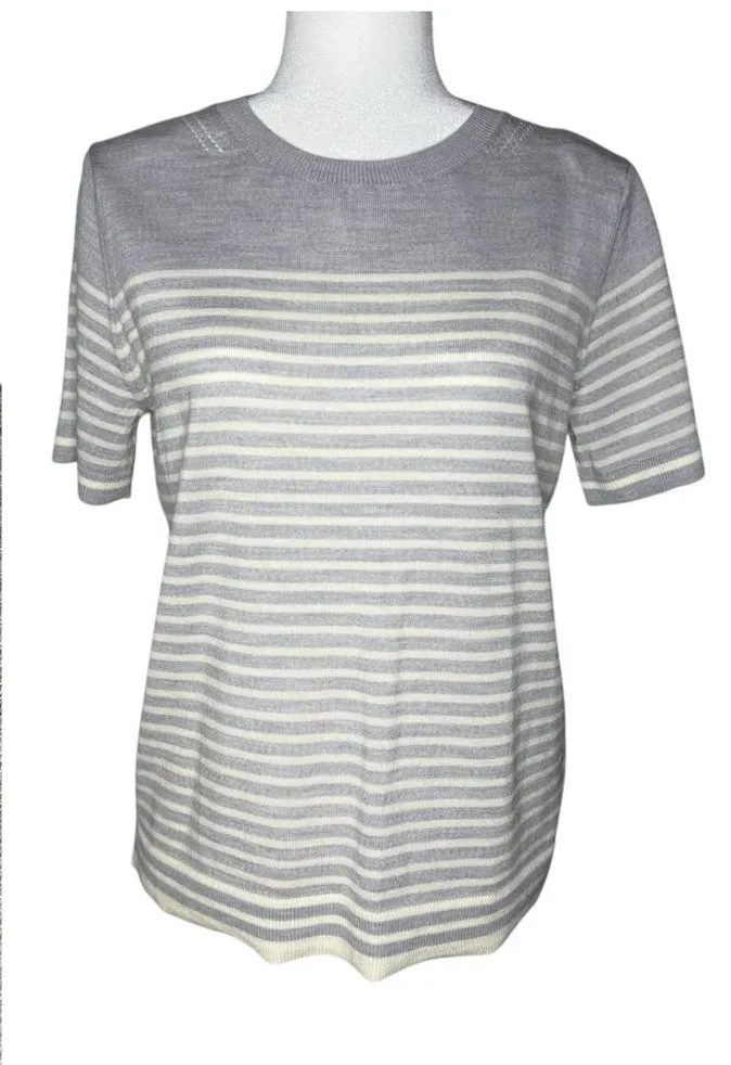 Banana Republic Sweater S Washable Merino Wool Knit Short Sleeve Excellent condition Gray and ivo... Show more