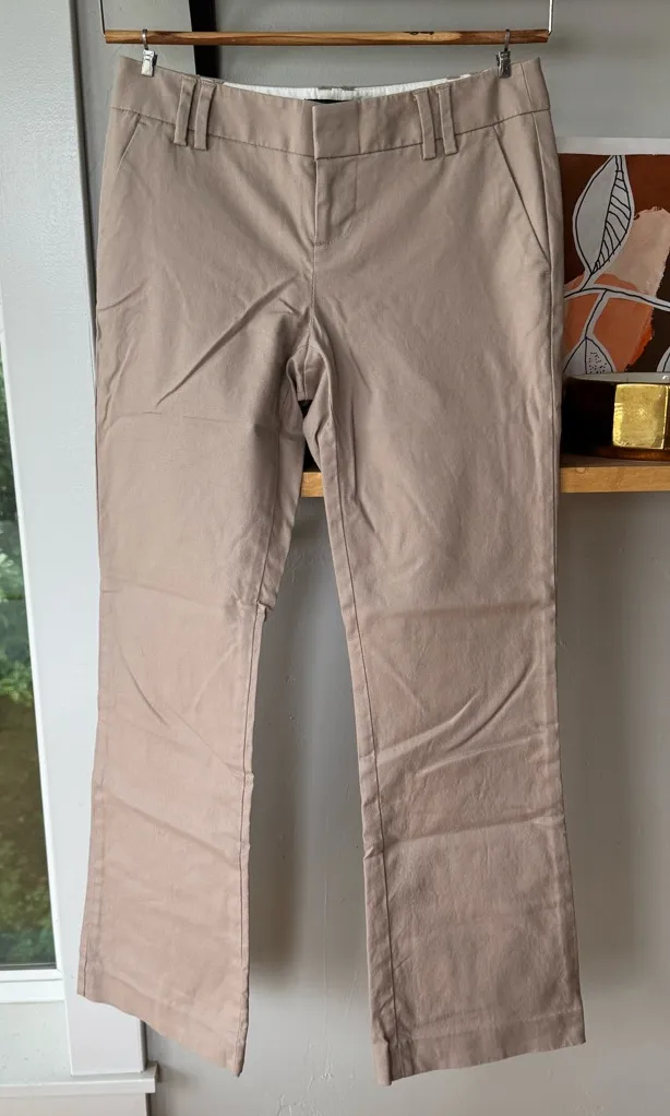 Banana Republic light brown or tan stretch cotton low rise bootcut dress pants. Size 0 Petite. Measu... Show more