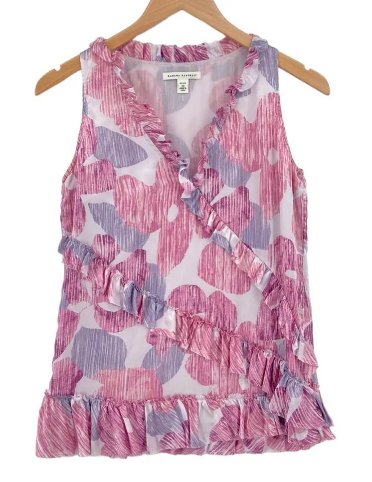 BANANA REPUBLIC 100% Silk Sleeveless Top Ruffles Women's Size: Small Features: 100% silk V-neck S... Show more