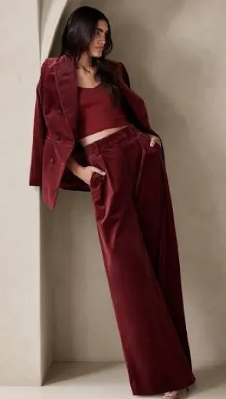 BANANA REPUBLIC Veluro Relaxed High Rise Wide Leg Velvet Pant Cabin Red Size 12S In a word? Sumptu... Show more