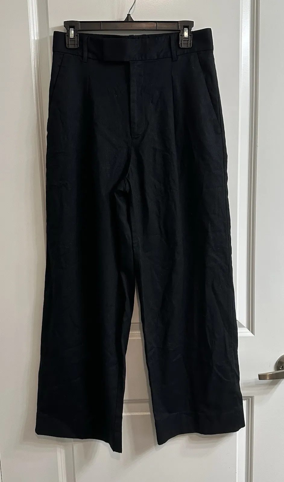banana republic, wide leg pants, black trousers, high rise, linen blend, cotton pants, petite 8, office pants, business casual, career wear, timeless style, breathable fabric, minimalist, summer workwear, tailored look, relaxed fit, effortless style, classic core, clean girl, minimalism, office siren, quiet luxury