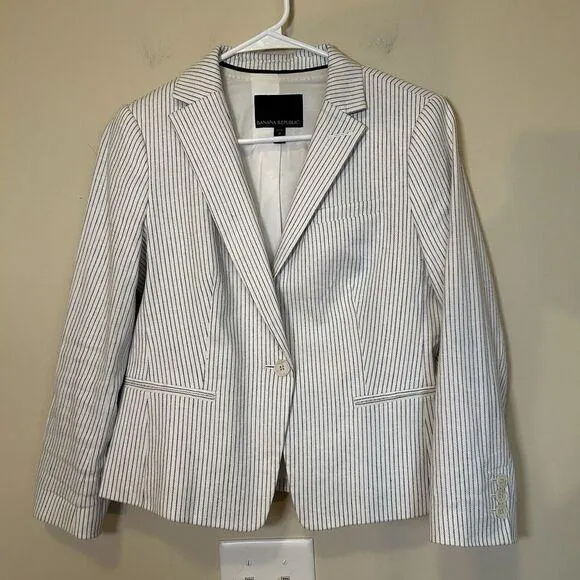 Elevate your wardrobe with this stunning Banana Republic blazer jacket! Crafted from a blend of line... Show more