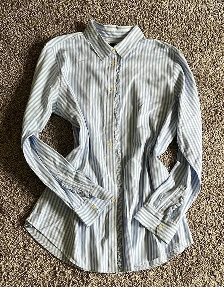 This Banana Republic Dillon Shirt is a button-down shirt that features a sophisticated blue and whit... Show more