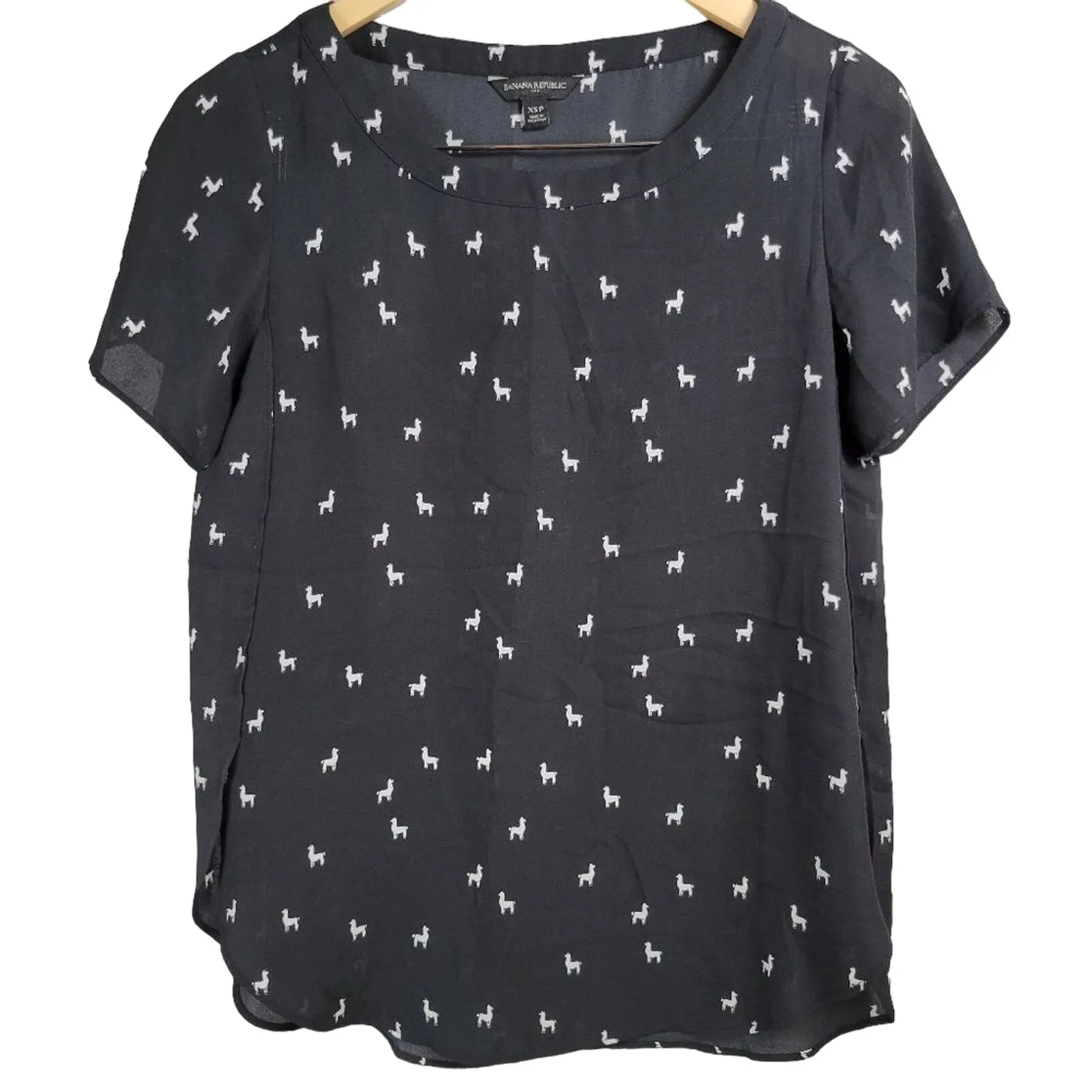 Banana Republic Women's Black Llama Print Short Sleeve Top XS Petite Tagged info: Size: XSP Materi... Show more