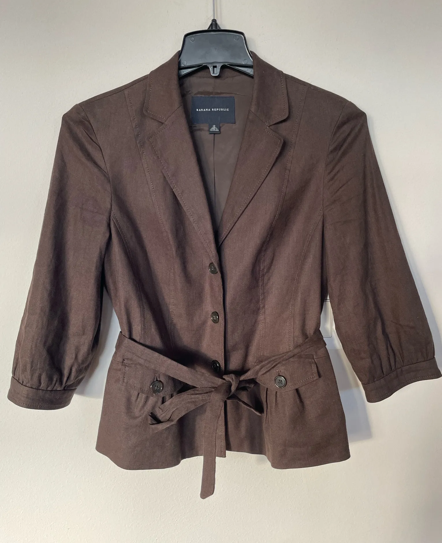 Banana Republic Women's Cool Winter Brown Belted Linen Jacket Size 12 Belt - $27 - From selina