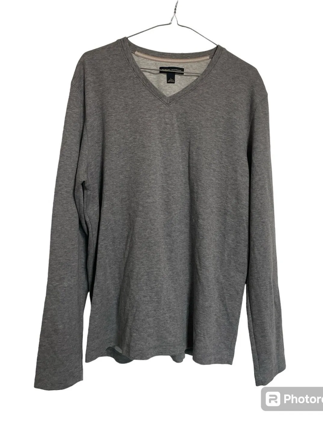 Banana Republic V-Neck Long Sleeve Casual T-Shirt Heather Gray Large Measurements laying flat acr... Show more
