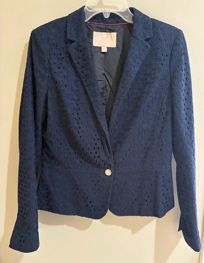 This Banana Republic blazer is a stylish addition to any wardrobe! It features a beautiful navy ey... Show more