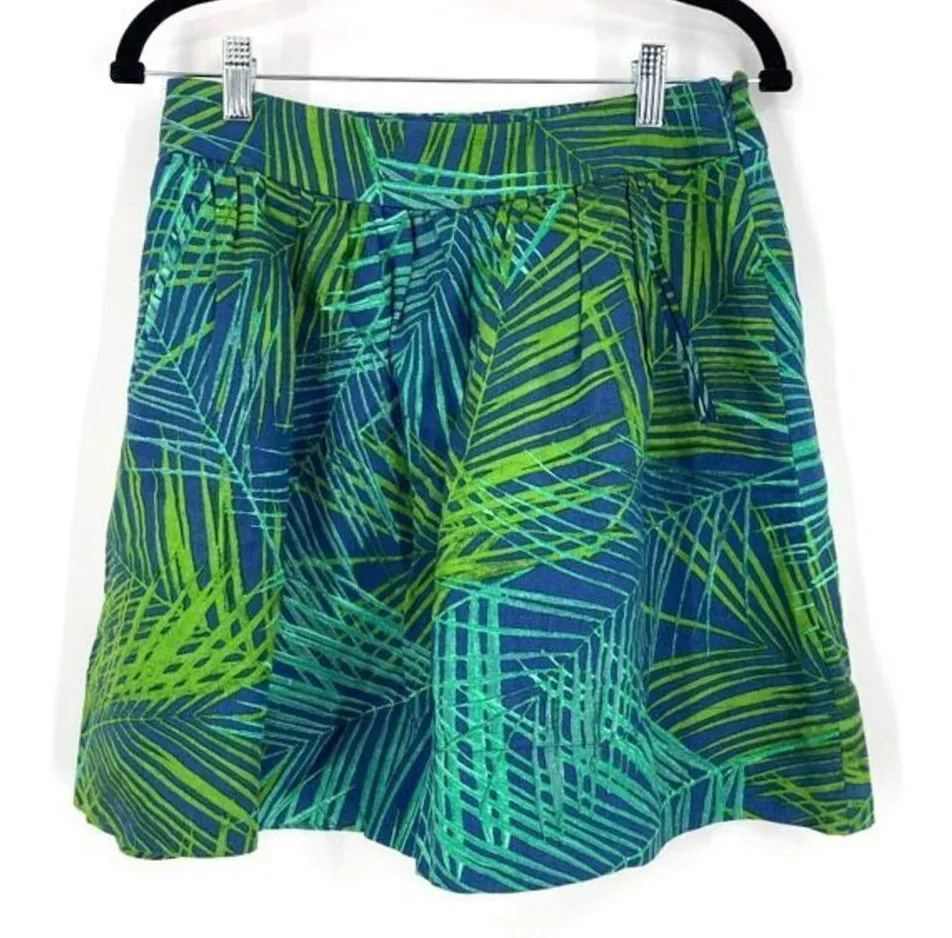Banana Republic Women’s Tropical Green Blue Vacation Linen Blend Skirt Size 6 A-line style Blue and... Show more