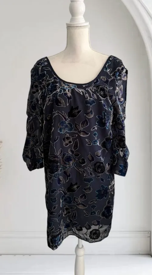 This stunning blue floral velvet swing dress by Band of Gypsies offers a chic and comfortable fit. P... Show more