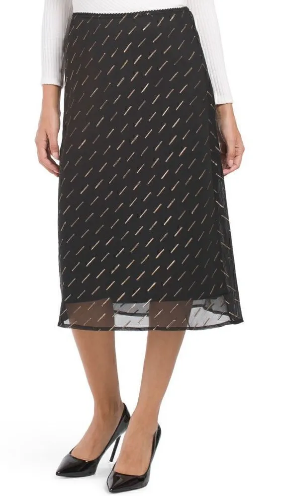 BAND OF GYPSIES Gold Metallic Flocked Overlay Midi Slip Skirt Black M NWT. Small lace lines elastic... Show more