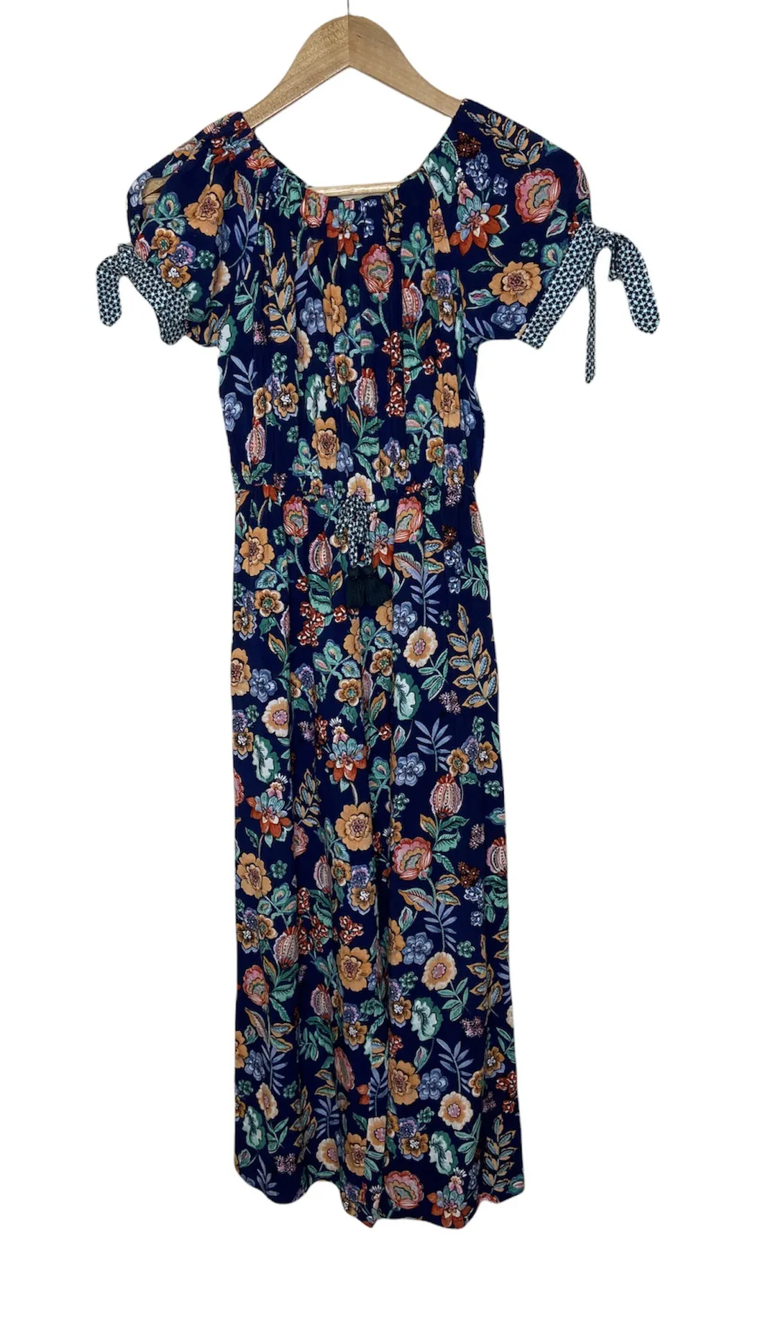 Size: Medium Excellent preowned condition Features: Jumpsuit Floral Navy Puff sleeves with slits a... Show more