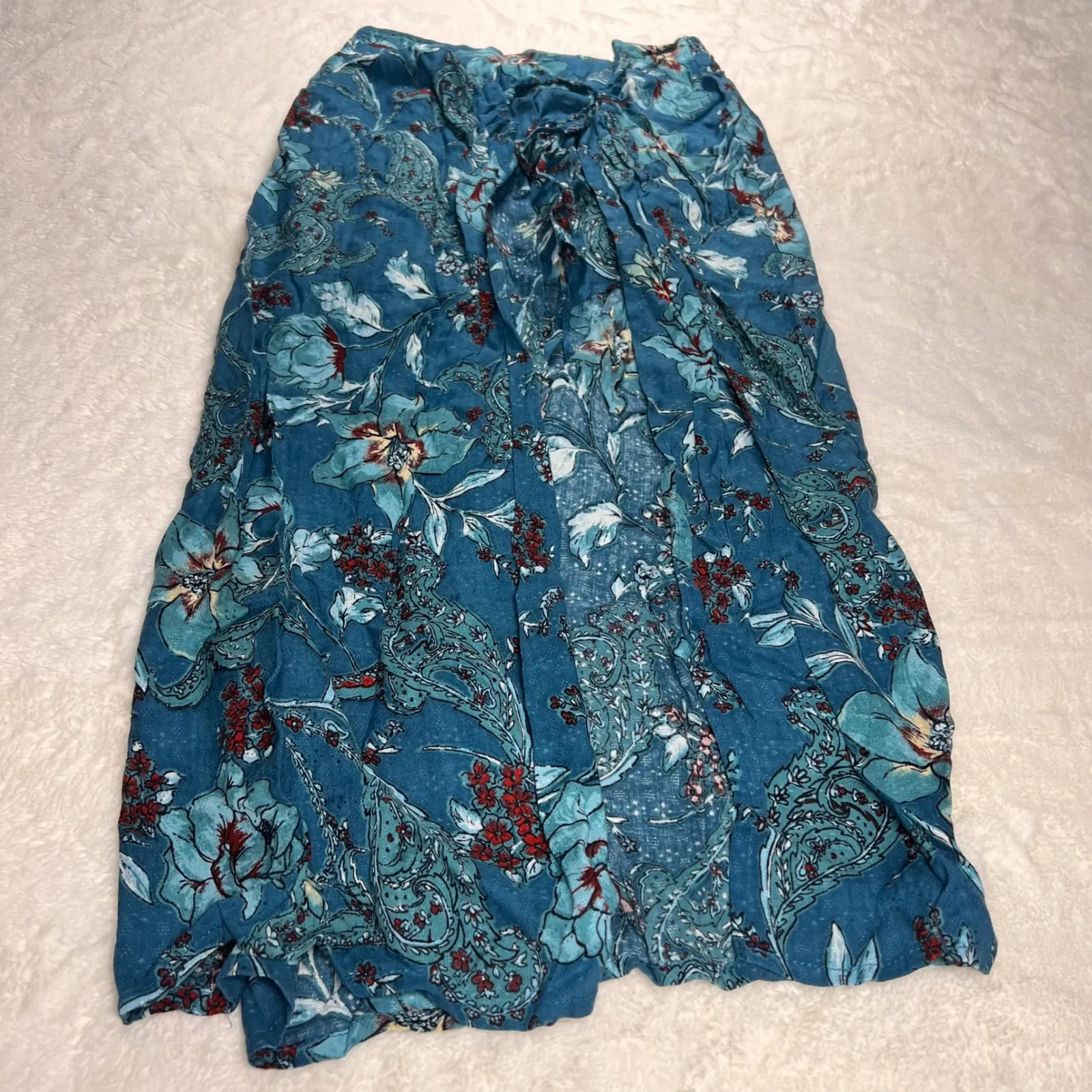 Band of Gypsies floral maxi skirt in a deep teal hue. This flowy skirt features a vibrant pattern wi... Show more