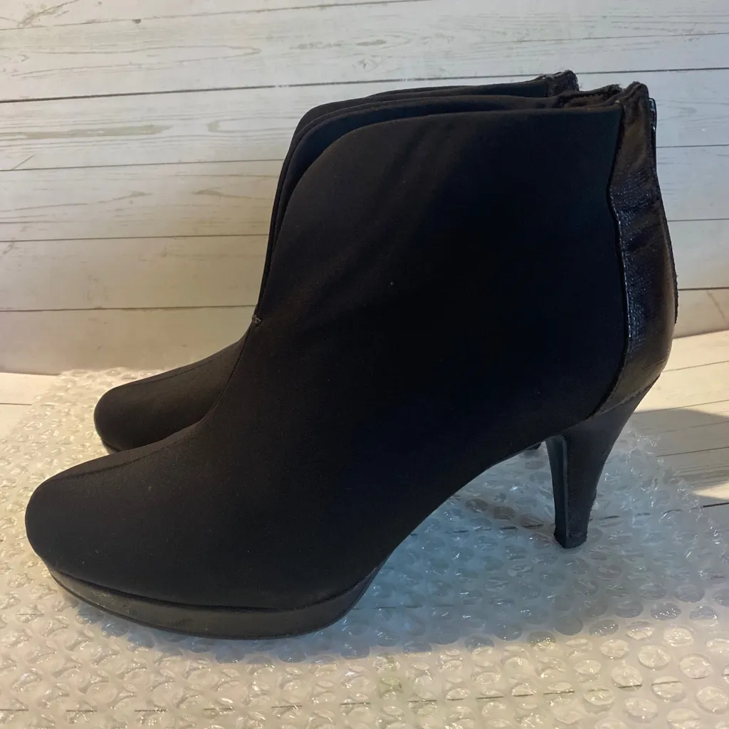Bandolino Ankle Bootie High Heel Back Zip Shoes Faux Snake Skin Black size 7 - $21 - From Vicenta