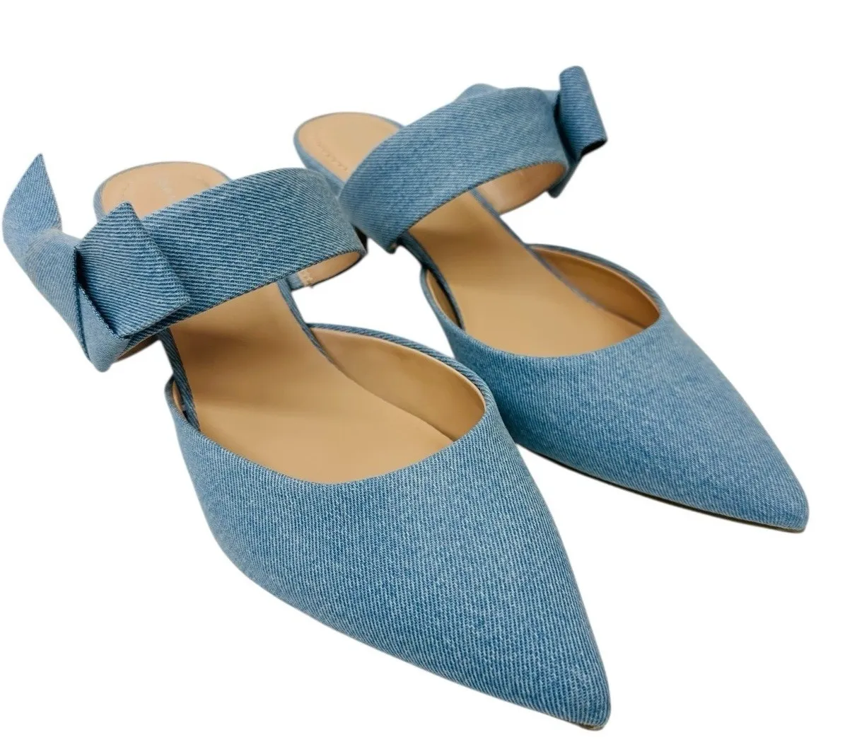 Bandolino Millie Women's Pointed Toe Kitten Heel Pump Color Light Blue 450 Size 9M NWB An elegantly folded strap brings flawless detail to a sophisticated pump crafted with a chic pointed toe and kitten heel. Light soft denim feel. Fits on the larger size of a 9M. • Synthetic upper, lining and sole • Imported Please see all photos as they are part of the description & ask any questions before purchasing.