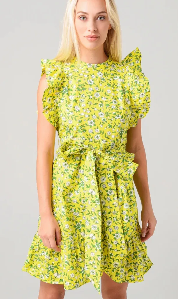 BANJANAN Audrey Mini Dress Spring Aurora Floral Print Yellow Green Size M Size M - $95 - From Katherine