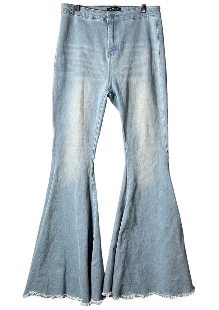 Banjul Jeans Womens M Blue Flare Bell Bottom Distressed High Rise Boho Hippie Features: Zip And Bu... Show more