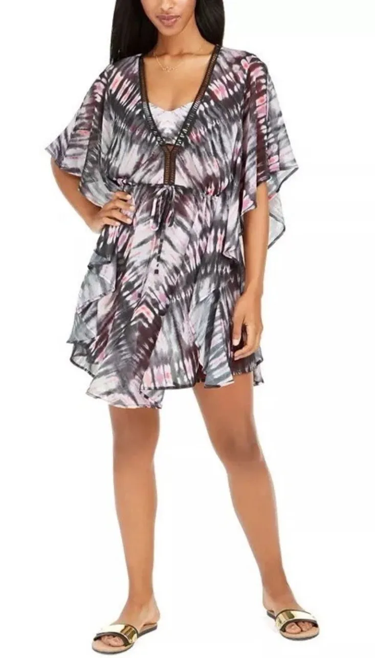 Bar III Ink-Dye Tie-Dye Caftan Black and Pink Swim Cover-Up Brand: Bar III Size: XL Color: Pink, Bla... Show more