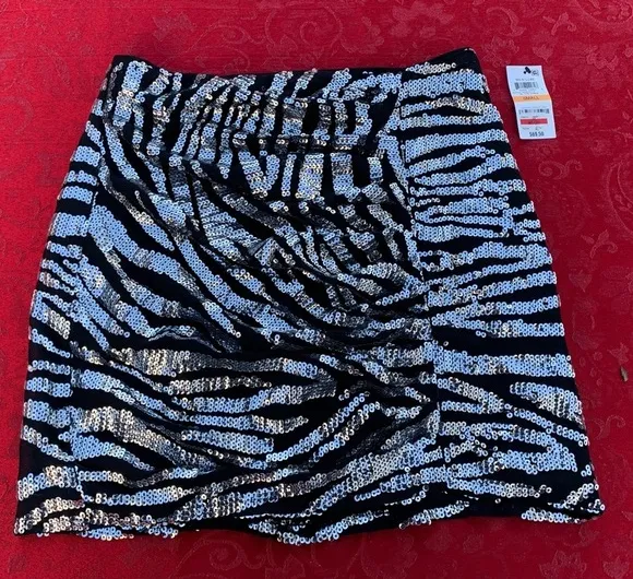 New with tag Bar III skirt size small. Black & silver sequin zebra print, has zipper down back. 15 i... Show more