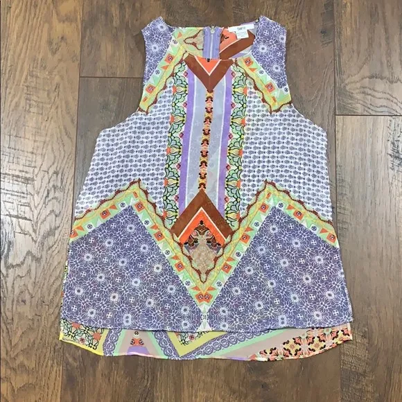 Size XS. 100% Polyester. Length 24 inches. Armpit to armpit 17 inches. Flowy. Great condition!