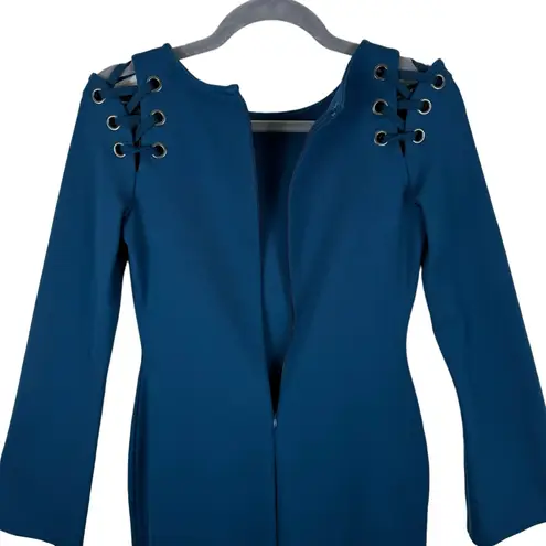 Excellent preowned condition. Teal 3/4 sleeve round neck short knit sheath dress. Sleeves have long... Show more