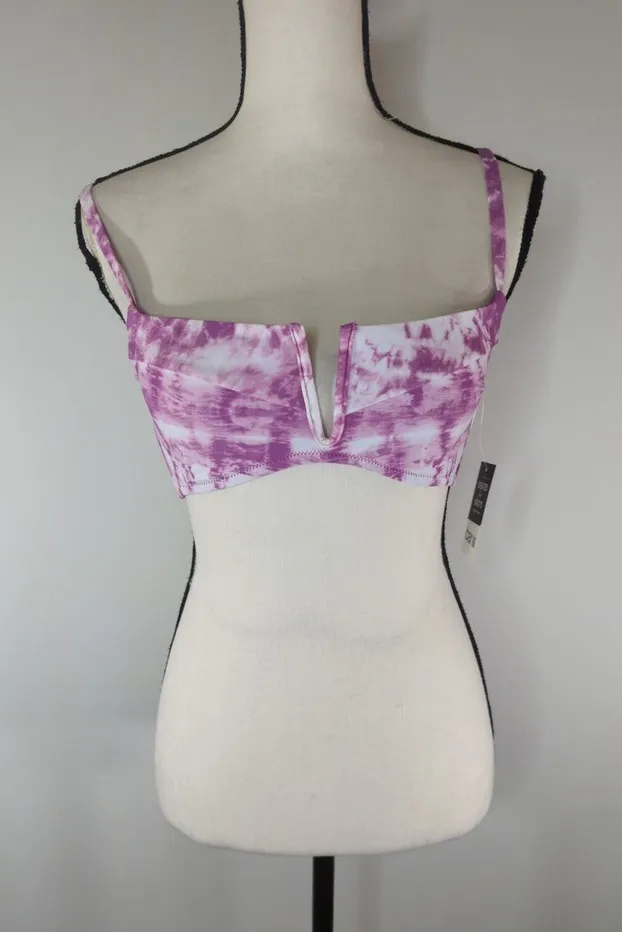 Bar III Women's Pink White Tie Dye Swimwear Top Small New with tags -v- front boning -self tie c... Show more