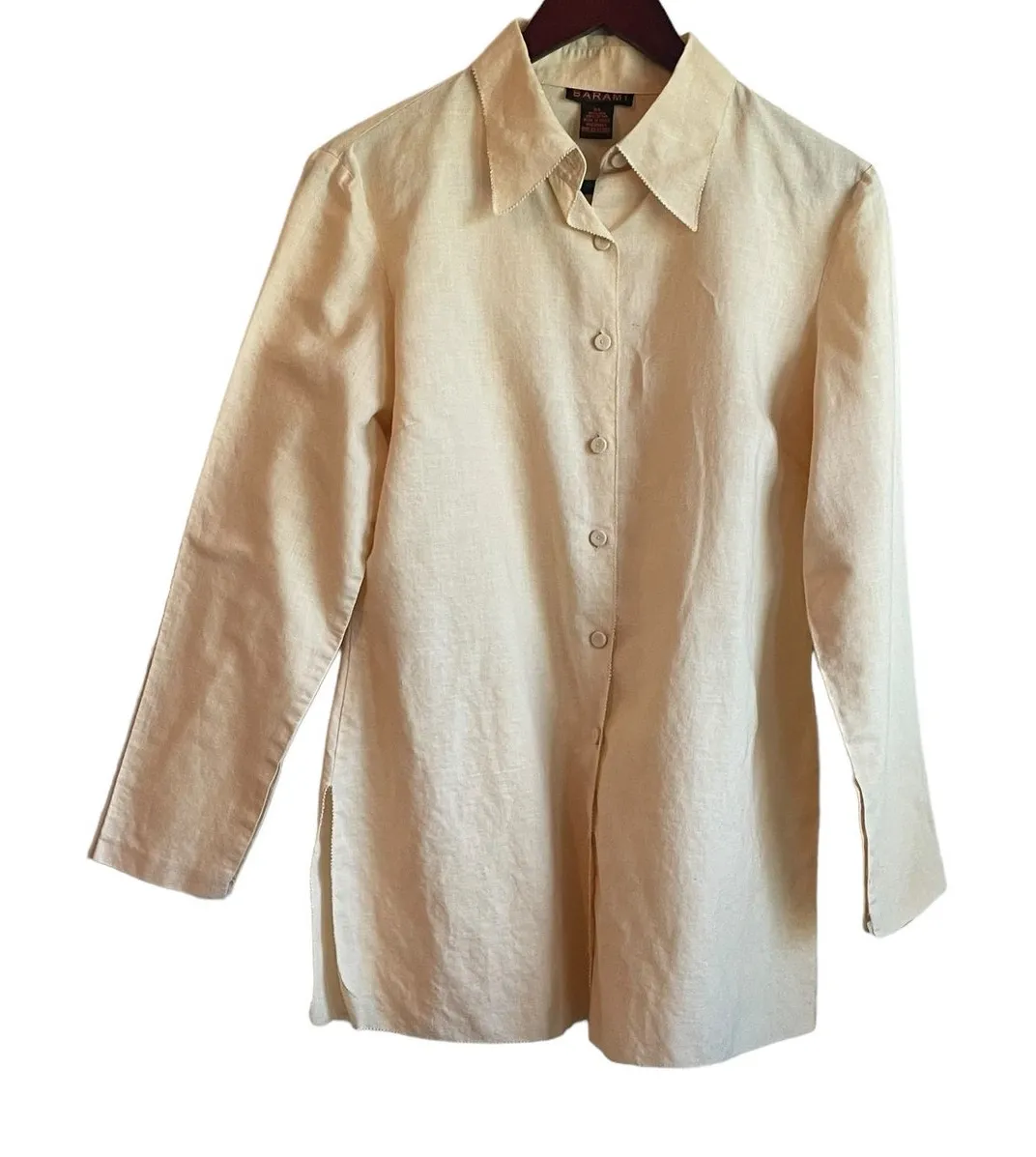 Barami Linen Cotton Women Top L Yellow Button Up Coastal Chic Office Travel Condition: preowned- g... Show more