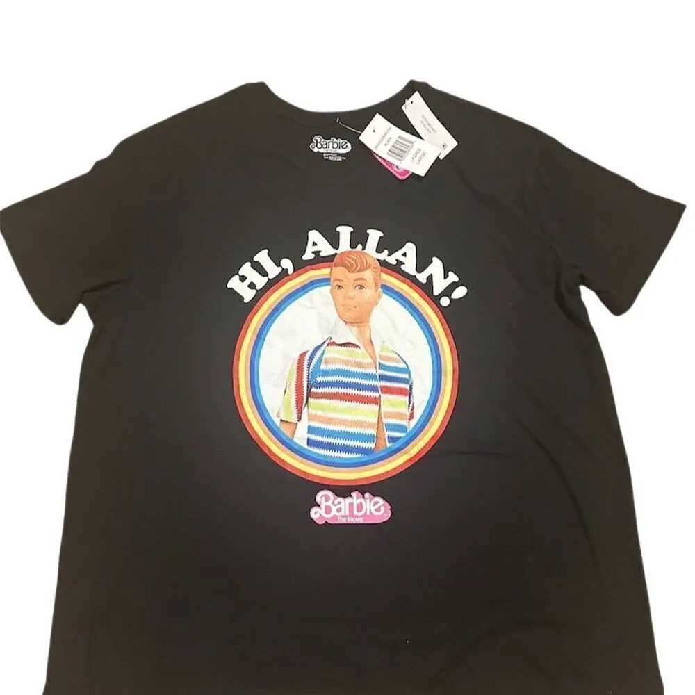 This Barbie T-shirt features a graphic print inspired by "Barbie The Movie" and showcases the character Allan. It is a size Large, designed for unisex adults, and comes in black. The T-shirt has a regular fit with short sleeves and a crew neckline. Made from cotton, it is suitable for summer wear and is machine washable. This is officially licensed merchandise from the 2020-2029 period. The item is new with tags. Brand: Barbie Size: L Color: Black Department: Unisex Adults Type: T-Shirt Theme: Barbie The Movie Fit: Regular Sleeve length: Short Sleeve Character: Allan Pattern: Graphic Print Neckline: Crew Neck Features: Officially Licensed Merchandise Material: Cotton Fabric type: Cotton Season: Summer Year manufactured: 2020-2029 Garment care: Machine Washable